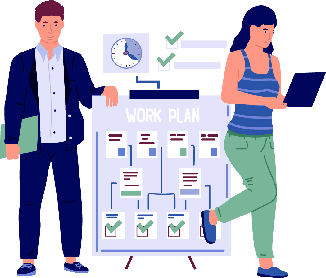 نقوم بتنظيم عملنا بحيث تكون النتيجة واضحة ومدروسة جيداً وتلبي توقعات العميل.